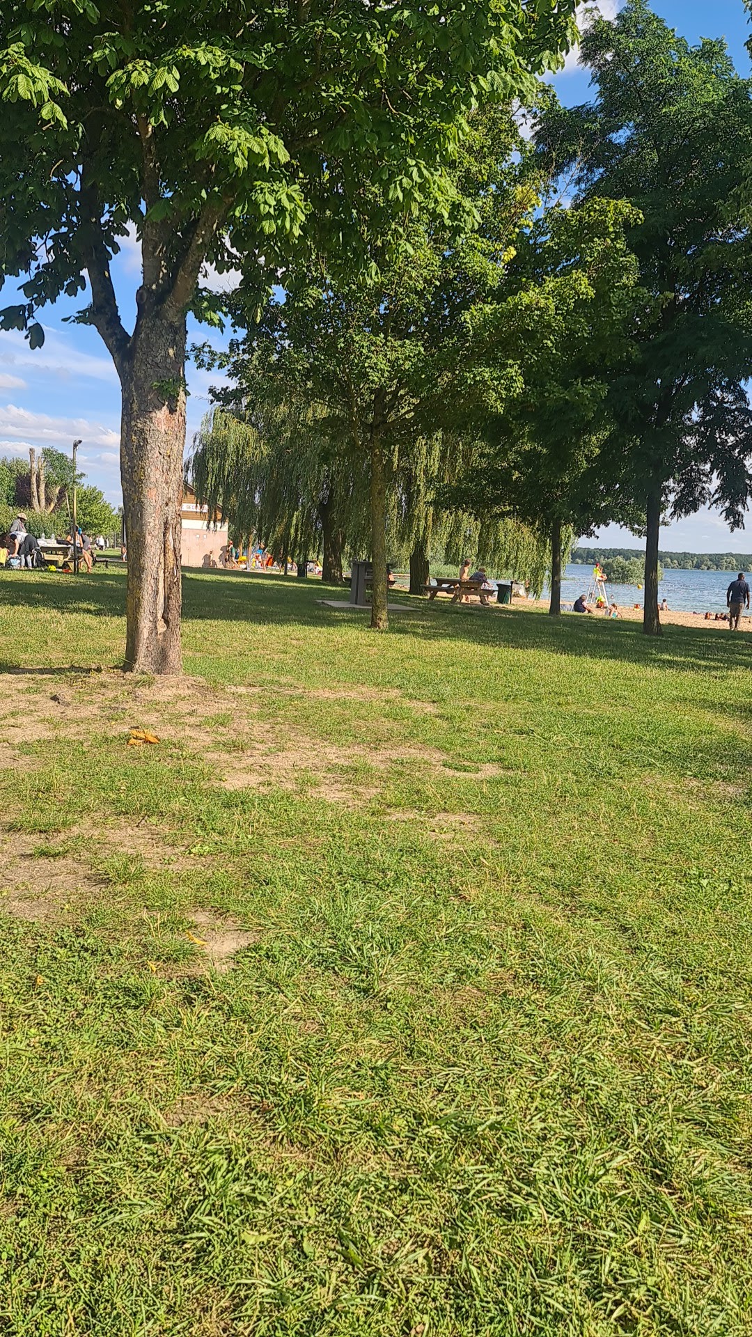 Très belle plage très propre et très bien surveillée Nous sommes arrivés vers 10h30 et avons eu la chance de trouver une table de pique nique libre et à l'ombre ! Et avons installé nos fauteuils à l'ombre sous les saules pleureurs... les enfants se sont bien amusés Nous y retournerons très bientôt